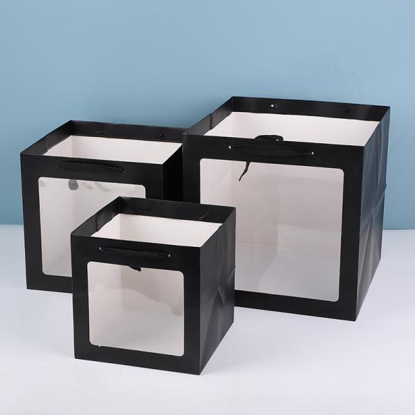 Elegant Black Gift Bags With Clear Window Premium Kraft Paper Hand Carry Bags For Luxury Packaging Images |